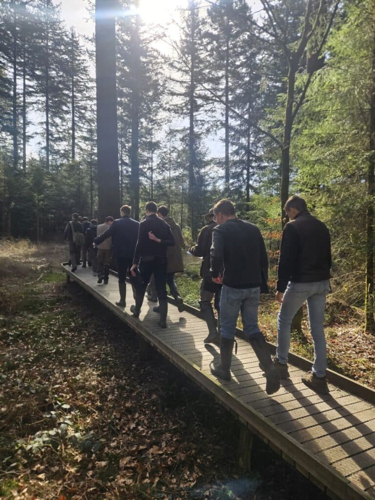 C’est dans un tout autre décor que, le lendemain matin, nous avons poursuivi sur la thématique SMCC puisque nous nous sommes rendus dans le Grand Bois de Vielsalm. C’est avec un enthousiasme partagé que Raphael Thunus, agent forestier du DNF (Département Nature et Forêt de la Région wallonne), nous a expliqué l’historique de cette forêt mélangée (Douglas, épicéa commun, sapin pectiné, tsuga, mélèzes, hêtre, sorbier,…) gérée en futaie irrégulière, ainsi que les principes techniques de sa gestion.